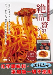 そんな歴史あるホテルで経験を積んだJINのシェフが伝統の味を受け継ぎ作り上げた、心地良い甘みと牛肉のうま味が広がるトマトソースです。