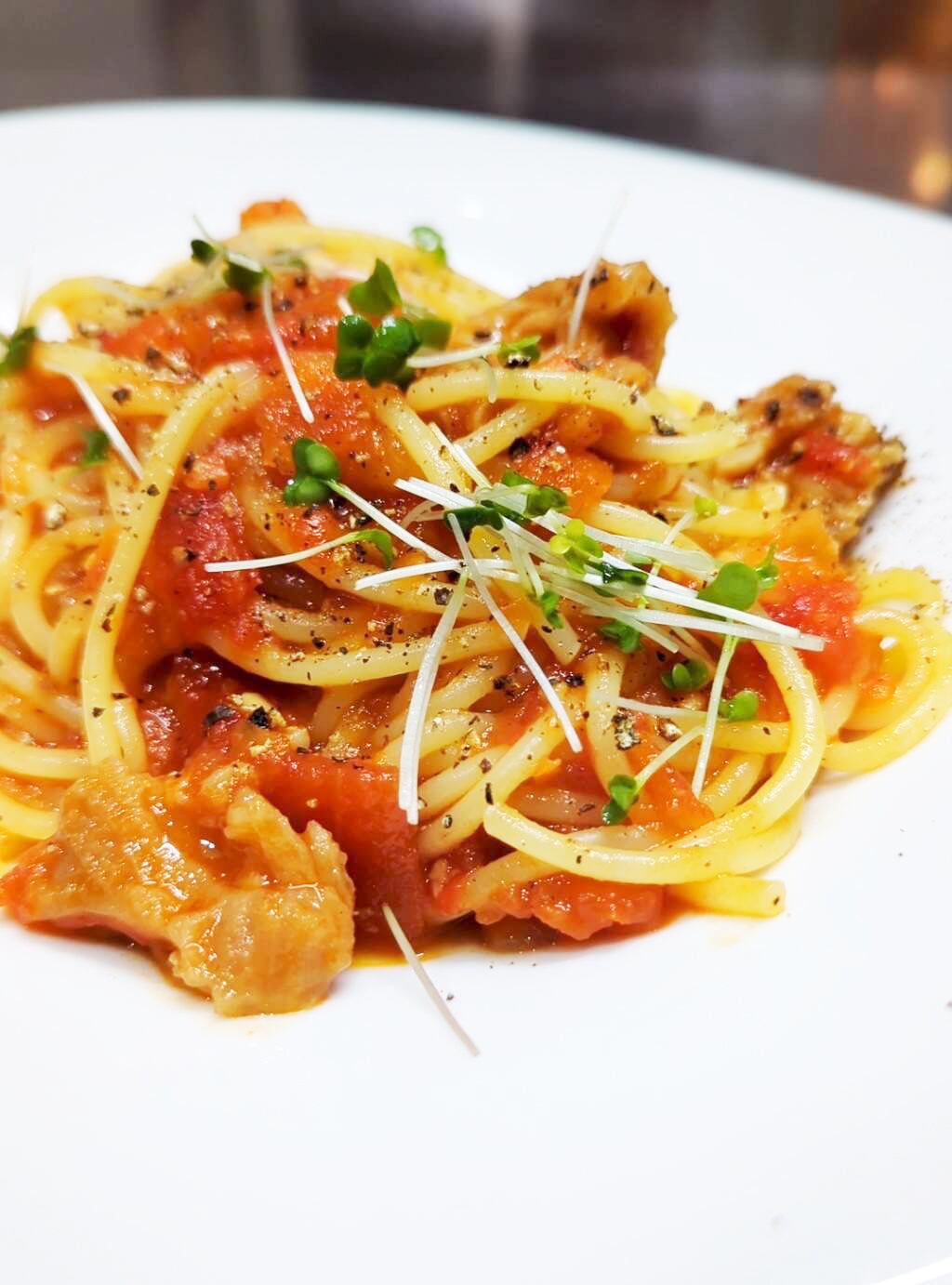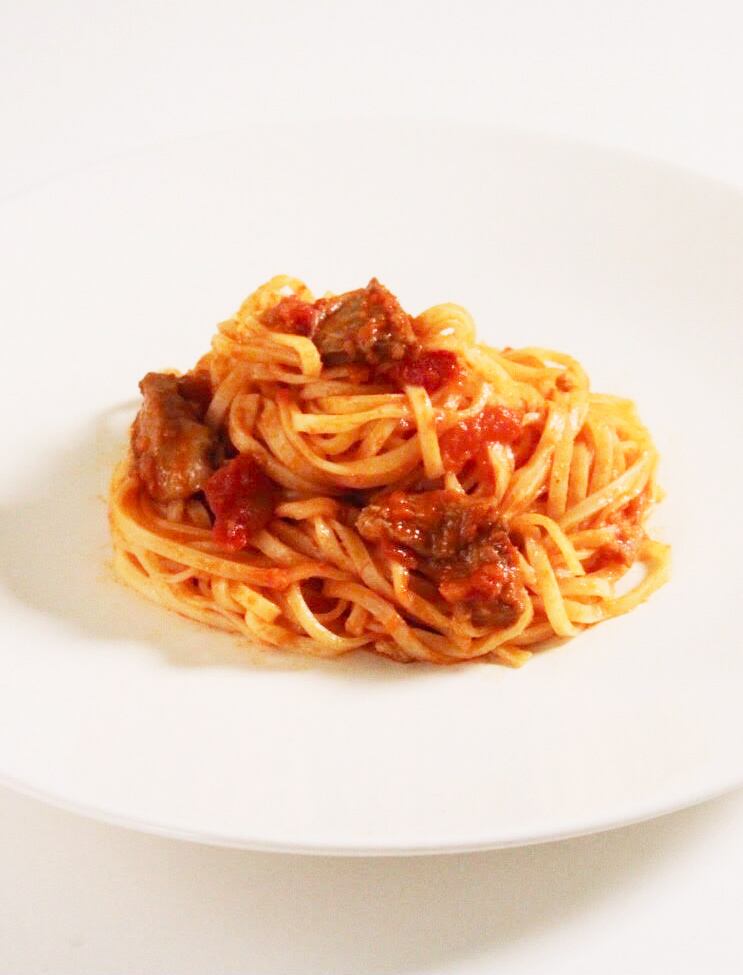 そんな歴史あるホテルで経験を積んだJINのシェフが伝統の味を受け継ぎ作り上げた、心地良い甘みと牛肉のうま味が広がるトマトソースです。